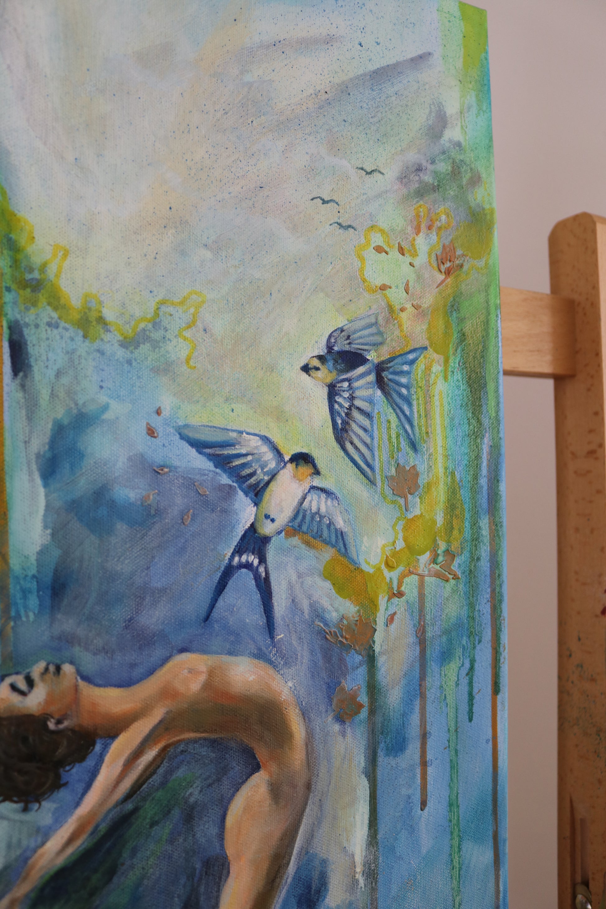 This prophetic painting speaks to the sacred release that comes through spiritual surrender. As we exhale fear, shame, and striving, we make room for the presence of God to bring healing, joy, and movement. The imagery invites viewers into the truth that the more we let go, the more we let Him into every part of our being.
